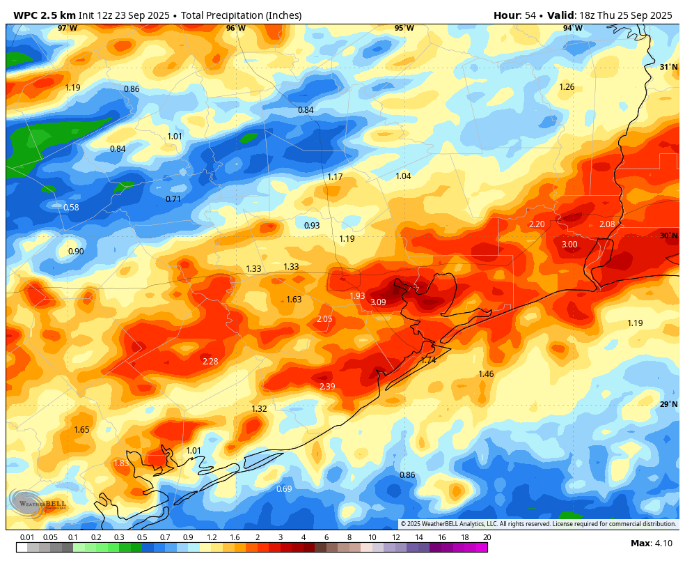 Originally published at: Chance of storms and heavy rainfall on Wednesday ahead of a modest cool front – Space City Weather