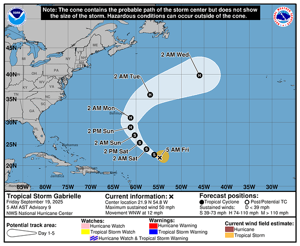 In brief: Gabrielle is looking better this morning, as it begins to slowly develop and organize in the open Atlantic. It should pass east of Bermuda but still bears some watching. Plus, today we dig in on the Caribbean battle in about 10 days between AI models and traditional weather models.