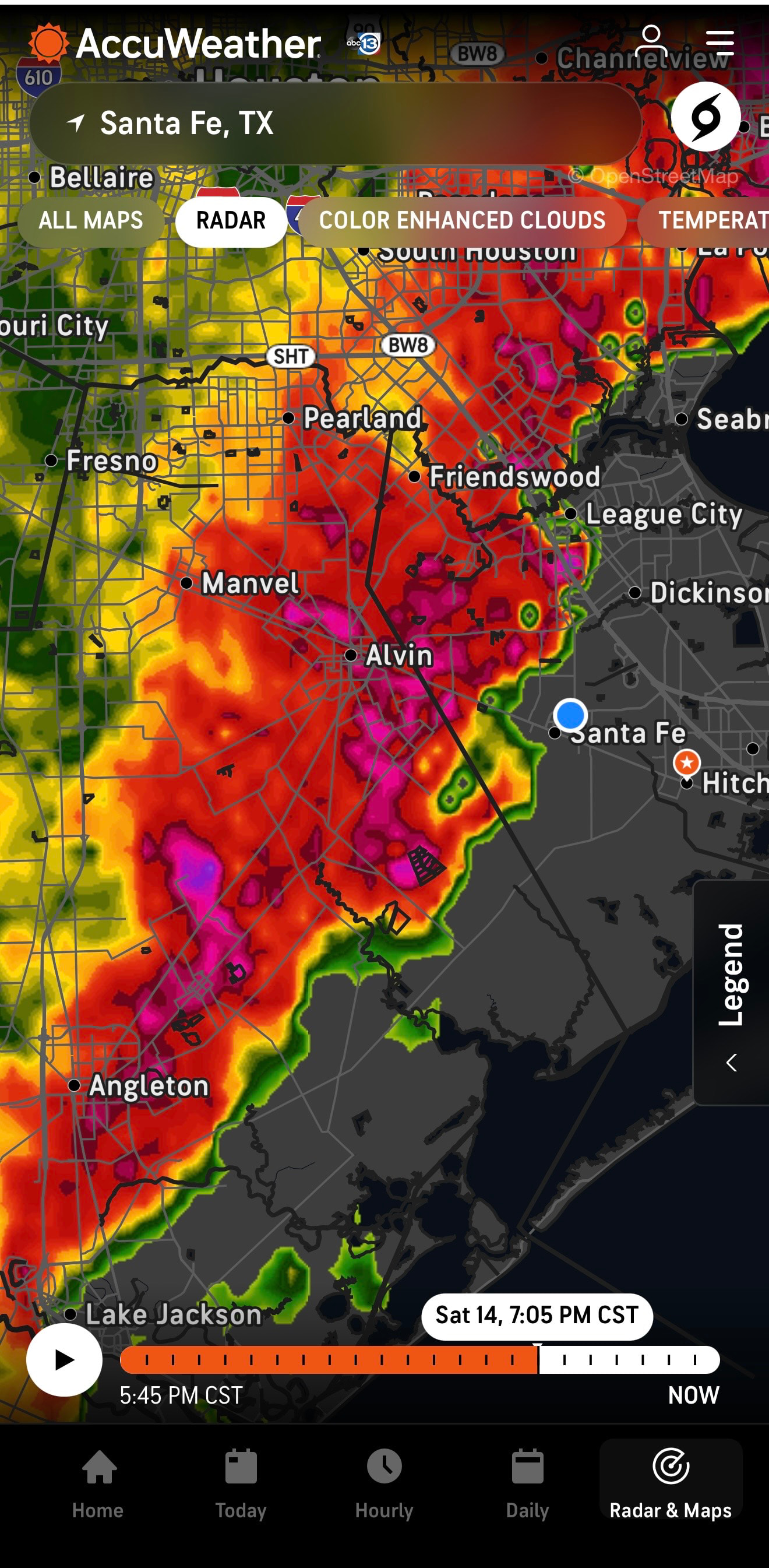 Anyway, the weather at your location in southeast Houston will turn gnarly for about an hour this evening, give or take. If you take cover as the system blows through, you can just as easily move about safely once it has passed. Conditions will calm down quickly this evening after the storms, with temperatures of about 60 degrees, falling to the upper 50s by Sunday morning.