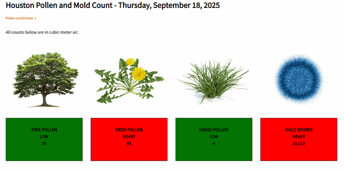 An ozone action day is in effect again today. For most people this will not be an issue, but for those of you in sensitive groups, try to avoid being outside except early and late in the day. Also, for those of you (like me) that have had the sniffles lately, there’s a good chance that ragweed is the culprit.