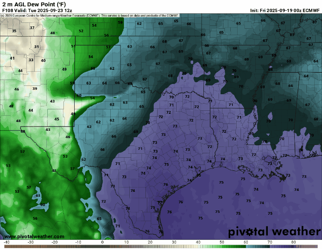 You can see the European model forecast of dewpoint for midweek, showing a distinct drop in dewpoint levels on Wednesday evening into Thursday and Friday. This is more of a humidity front than a cold front, though the lower humidity should translate into a chance at widespread lows in the 60s by Friday morning perhaps. With the Autumnal Equinox on Monday afternoon, we do see signs of fall sprinkling the forecast.